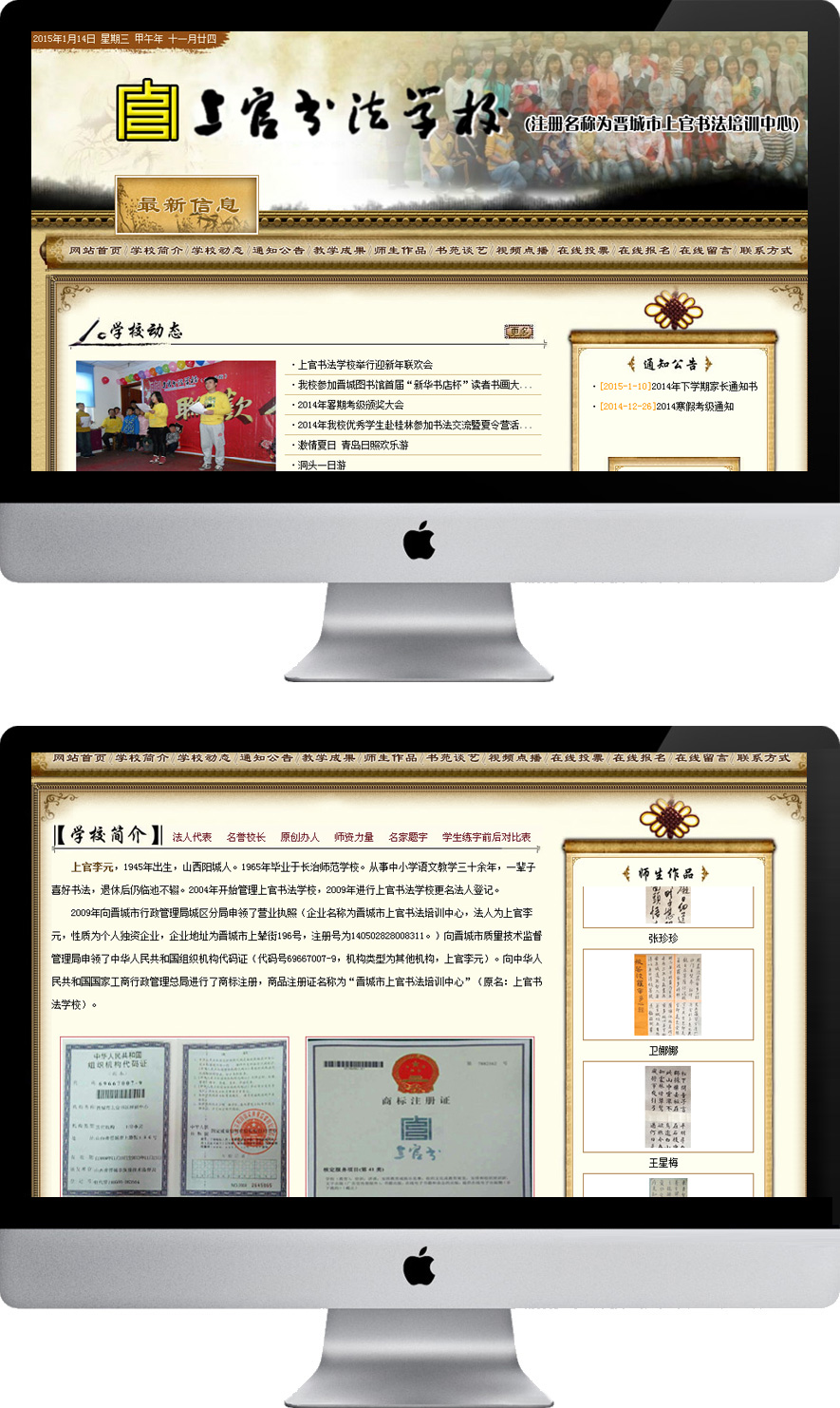 上官李元,1945年出生,山西陽城人。1965年畢業(yè)于長治師范學(xué)校。從事中小學(xué)語文教學(xué)三十余年,一輩子喜好書法,退休后仍臨池不輟。2004年開始管理上官書法學(xué)校,2009年進(jìn)行上官書法學(xué)校更名法人登記。 2009年向晉城市行政管理局城區(qū)分局申領(lǐng)了營業(yè)執(zhí)照(企業(yè)名稱為晉城市上官書法培訓(xùn)中心,法人為上官李元,性質(zhì)為個人獨資企業(yè),企業(yè)地址為晉城市上輦街196號,注冊號為140502828008311。)向晉城市質(zhì)量技術(shù)監(jiān)督管理局申領(lǐng)了中華人民共和國組織機構(gòu)代碼證(代碼號69667007-9,機構(gòu)類型為其他機構(gòu),上官李元)。向中華人民共和國國家工商行政管理總局進(jìn)行了商標(biāo)注冊,商品注冊證名稱為“晉城市上官書法培訓(xùn)中心”(原名:上官書法學(xué)校)。