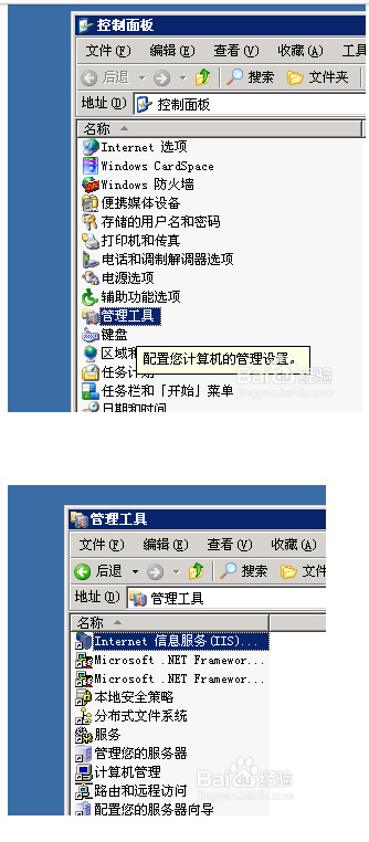 2、服務器可以正常進入桌面后,依次找到控制面板-管理工具-Internet 信息服務(IIS)管理器,進行網站設置,具體如圖: