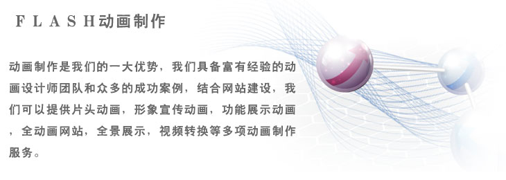 全動畫網(wǎng)站對于我們的動畫制作團隊來說是最樂于接受的挑戰(zhàn)。它要求完美結(jié)合目的,創(chuàng)意,設計,效果,展示和互動。對于瀏覽者來說這是一種全新的用戶體驗。全動畫網(wǎng)站可以實現(xiàn)很多普通網(wǎng)頁無法實現(xiàn)的效果,提供豐富的網(wǎng)絡應用。我們團隊在這方面也積累了豐富的成功實踐。